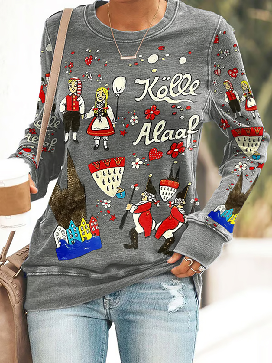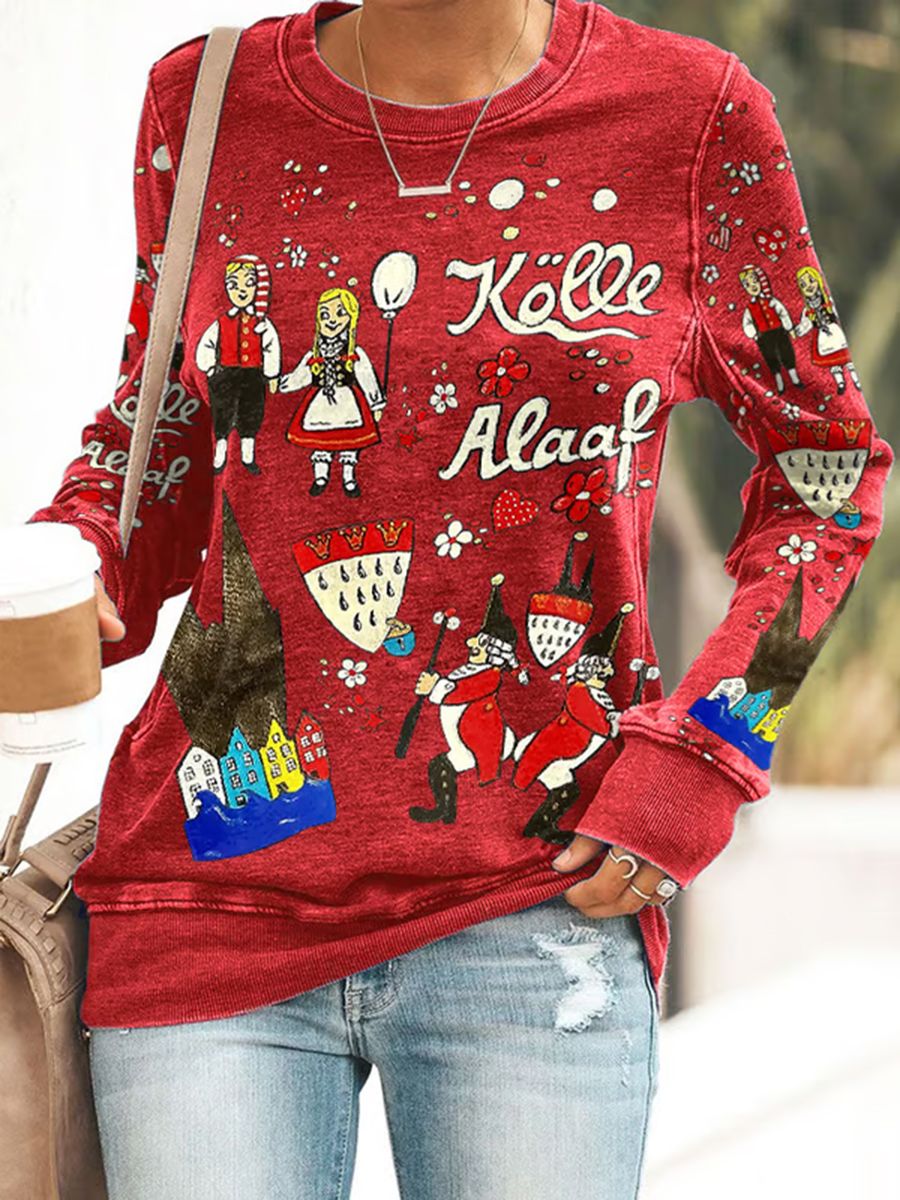 Cologne Carnival Clown Print für Damen Lässiges Langarm-Oberteil in mittlerer Länge