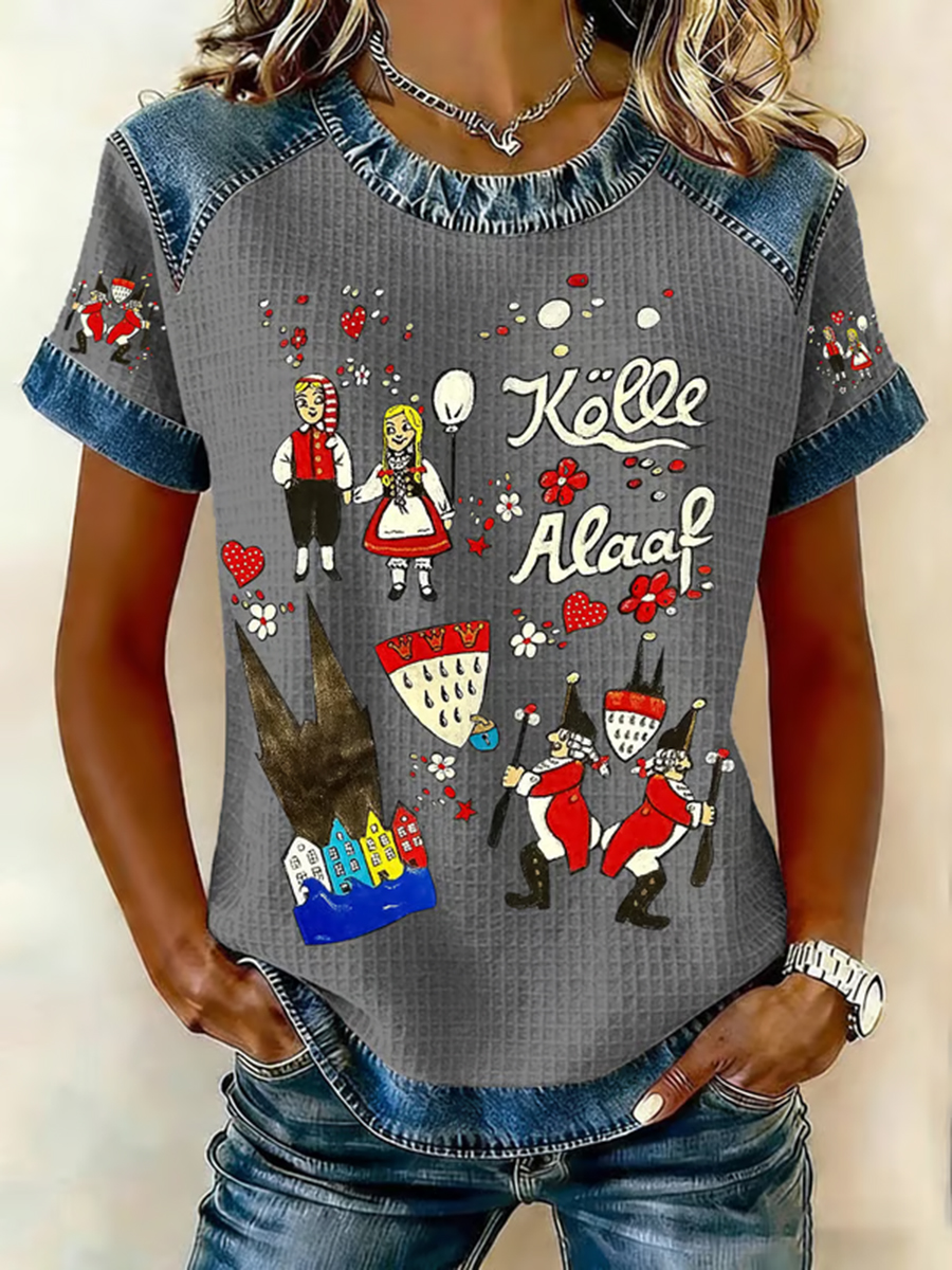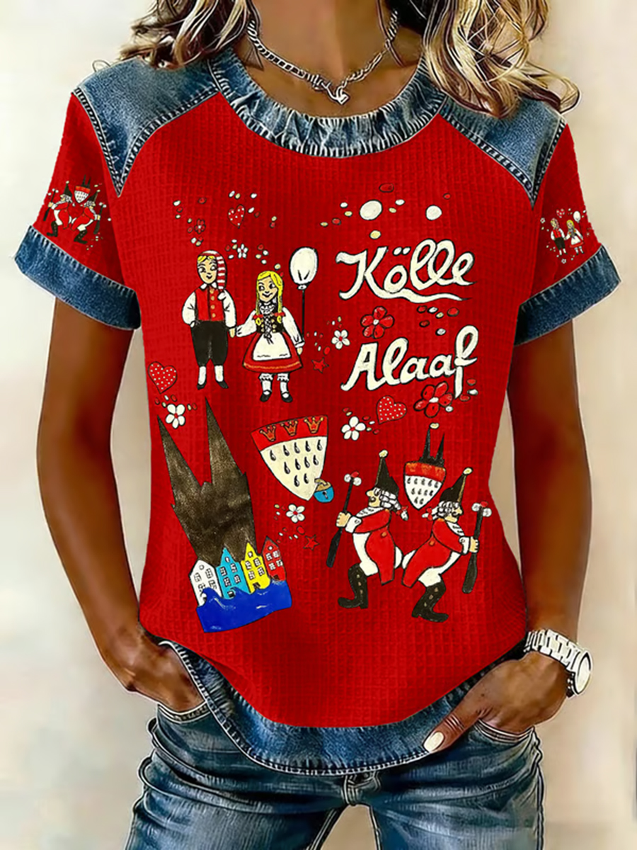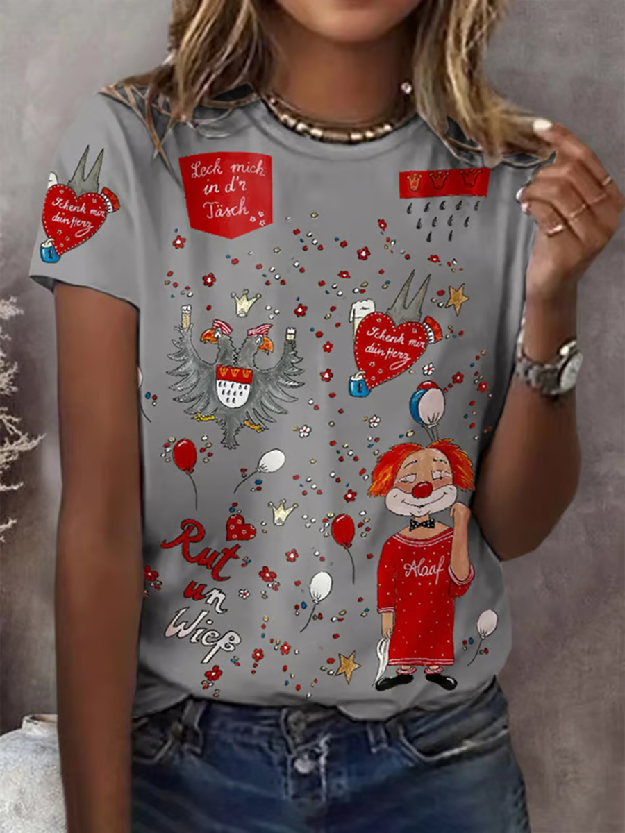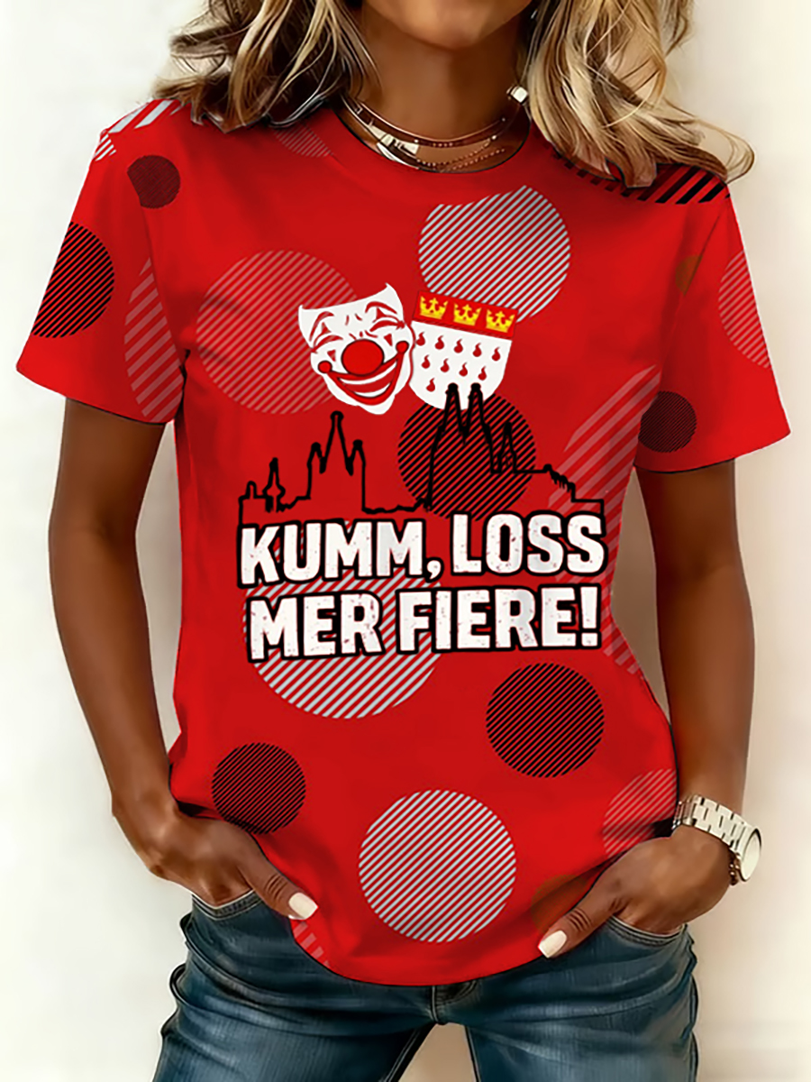 Frauen Köln Karneval Clown Print lässig V-Ausschnitt lang ärmel iges T-Shirt
