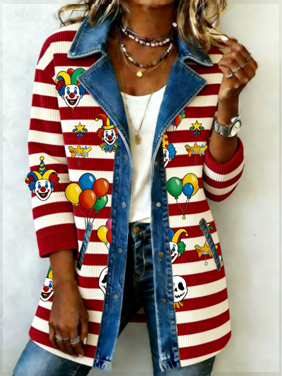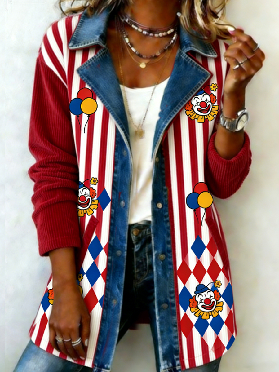 Cologne Carnival Clown Print für Damen Lässiges Langarm-Oberteil in mittlerer Länge