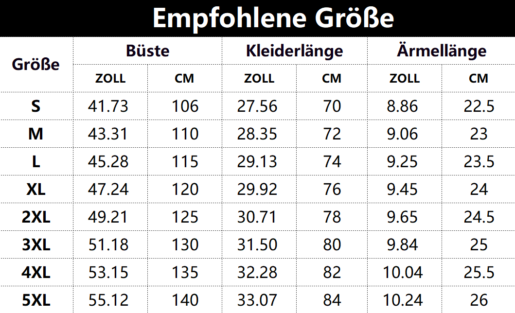 Diese Daten wurden aus der manuellen Messung des Produkts erhalten, es kann um 0,03-0,06 ZOLL/1-3 CM aus geschaltet sein