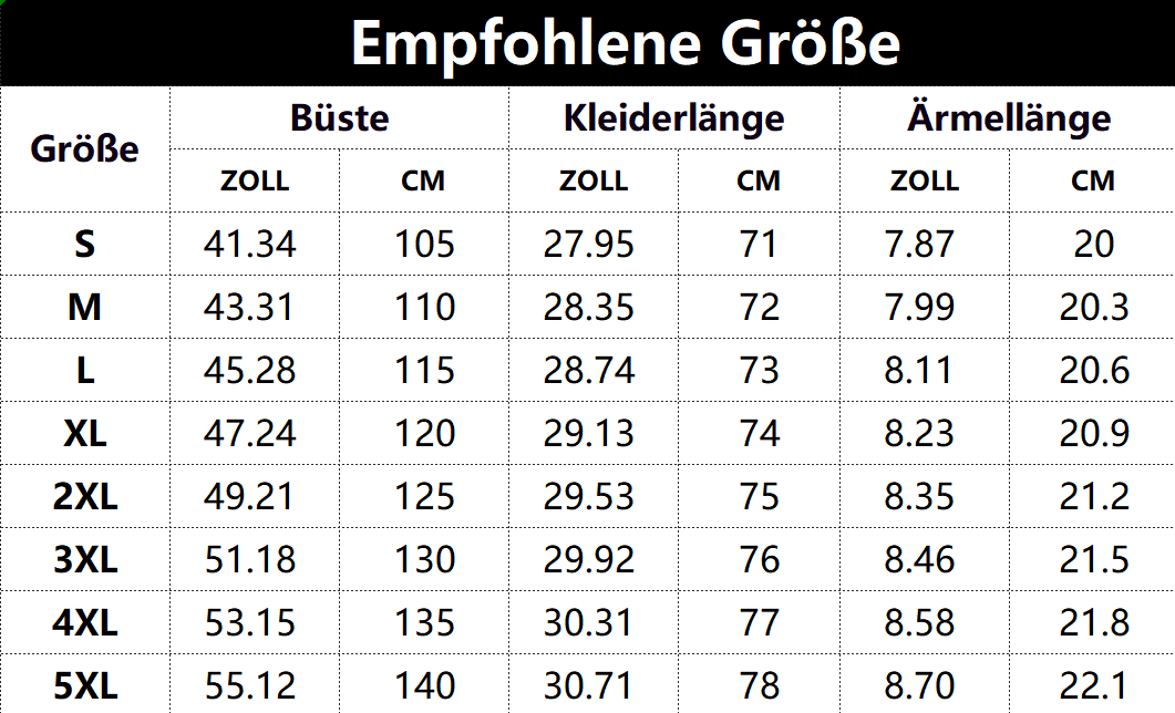 * Diese Daten wurden aus der manuellen Messung des Produkts erhalten, es kann um 0,03-0,06 ZOLL/1-3 CM aus geschaltet sein