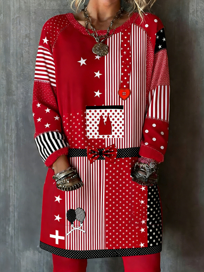 Damen-Kölner Karnevals druck Lässiges Langarm-Oberteil in mittlerer Länge