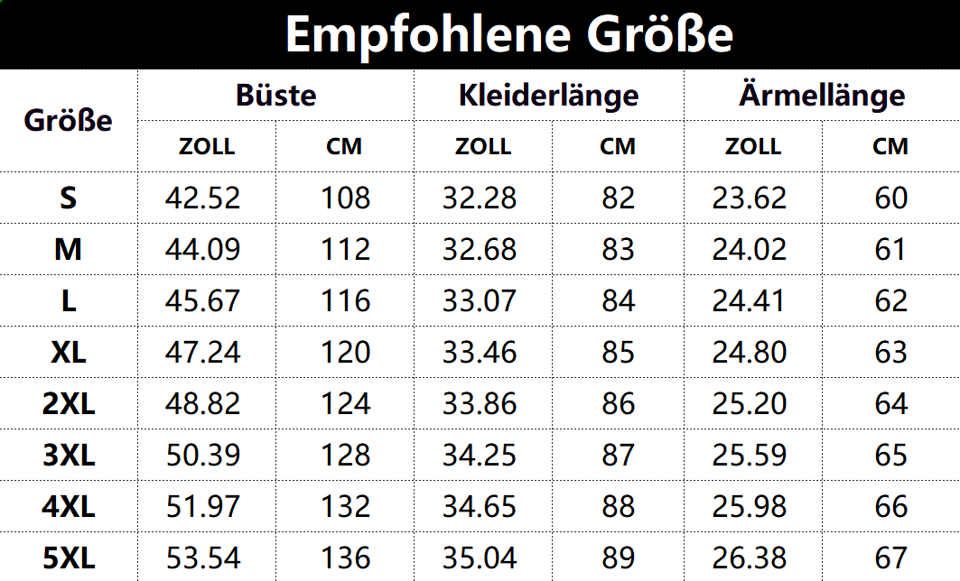• Vorschlag: * Diese Daten wurden durch manuelle Messung des Produkts erhalten und können um 0,03-0,06 Zoll/1-3 Zentimeter abweichen.
