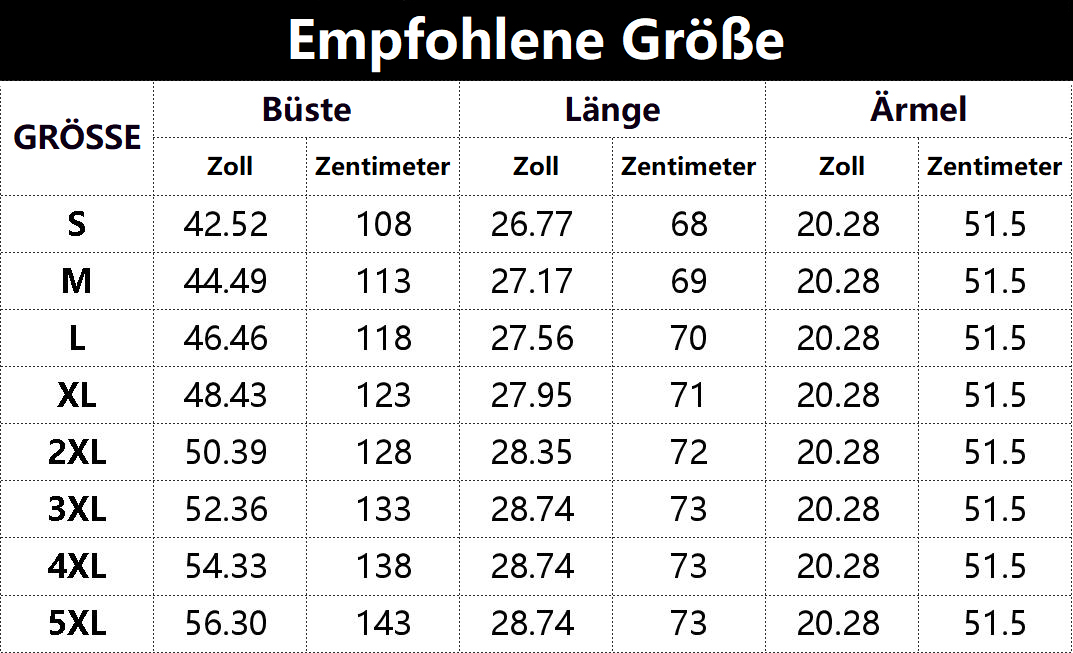 * Diese Daten wurden aus der manuellen Messung des Produkts erhalten, es kann um 0,03-0,06 ZOLL/1-3 CM aus geschaltet sein