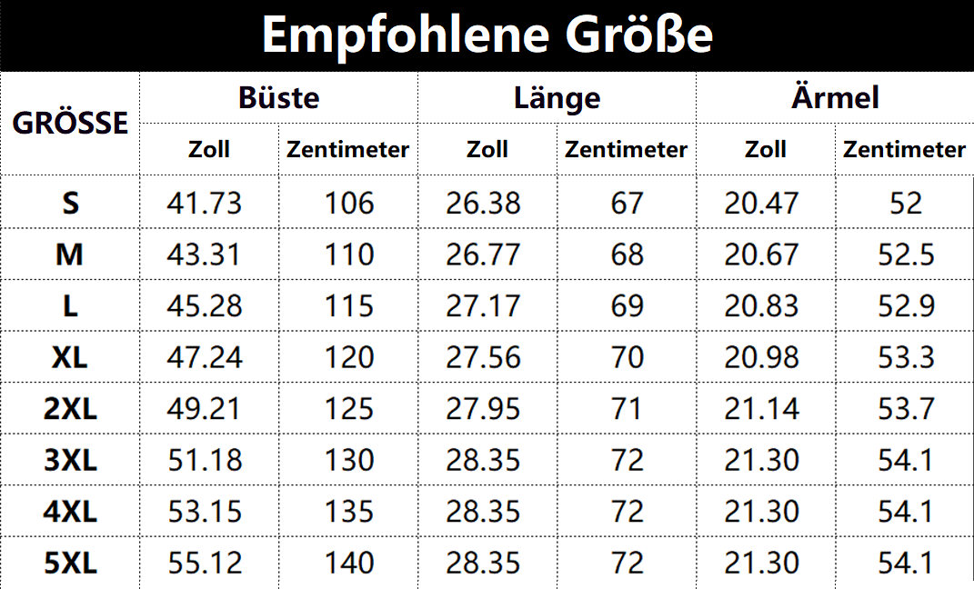 Größen tabelle: