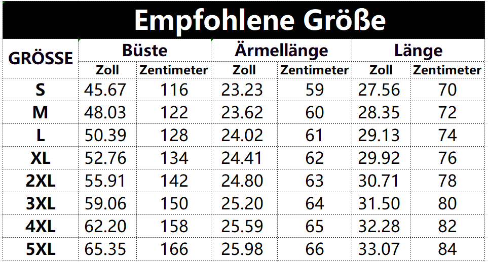 * Diese Daten wurden aus der manuellen Messung des Produkts erhalten, es kann um 0,03-0,06 ZOLL/1-3 CM aus geschaltet sein