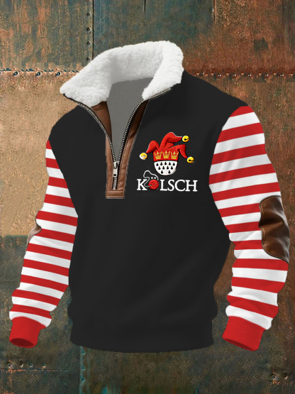 Herren Cologne Carnival Print Stricks toff Reiß verschluss Pelz kragen Hoodie